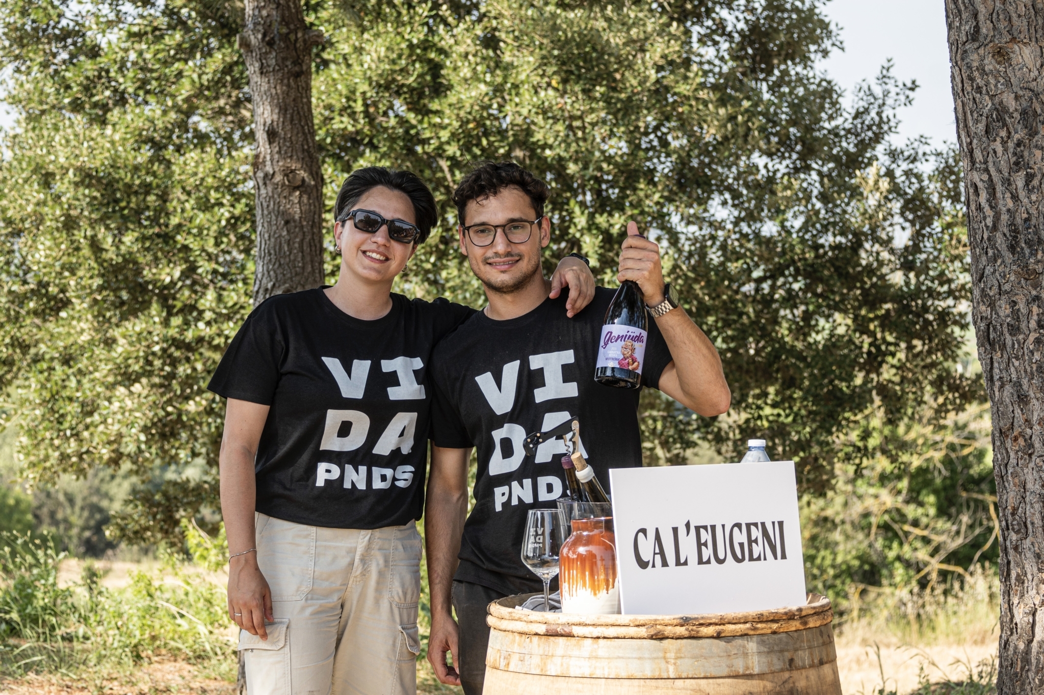 Més que dur-nos molt lluny a buscar horitzons nous —que també—, el vi ens ha empès sempre i sobretot a mirar cap a casa: al mosaic de conreus que coexisteixen amb la vinya, a les petites masses forestals que ens envolten, als dos rius que ens travessen com dues esquerdes, a les bèsties que conviuen amb més o menys bona voluntat amb la nostra pagesia. És aquest paisatge, viscut i treballat per generacions d’Eugenis, el que acaba configurant la nostra alineació titular: quatre Eugenis pastats l’un a l’altre, la besàvia Teresina, l’àvia Maria, la Laura, i el lligam de tots ells amb aquest lloc.
